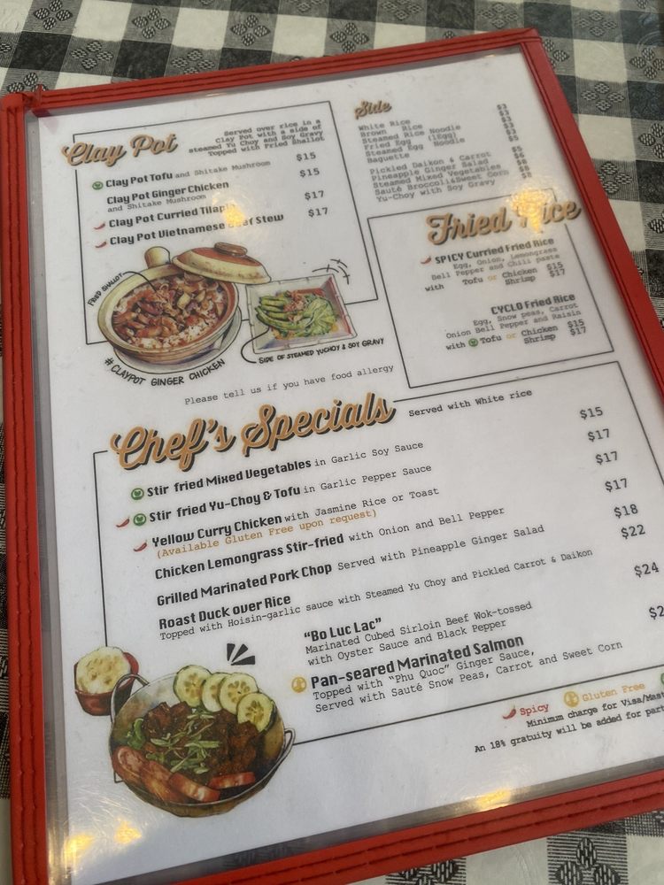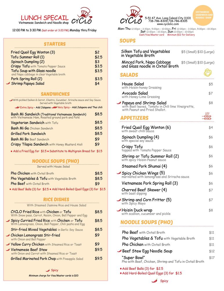 Whether you're dining in or taking out, the casual atmosphere and welcoming staff make every visit enjoyable. Plus, with amenities like outdoor seating, catering, and happy hour specials, it’s an ideal spot for families and groups alike. Come experience the taste of Vietnam at Cyclo!